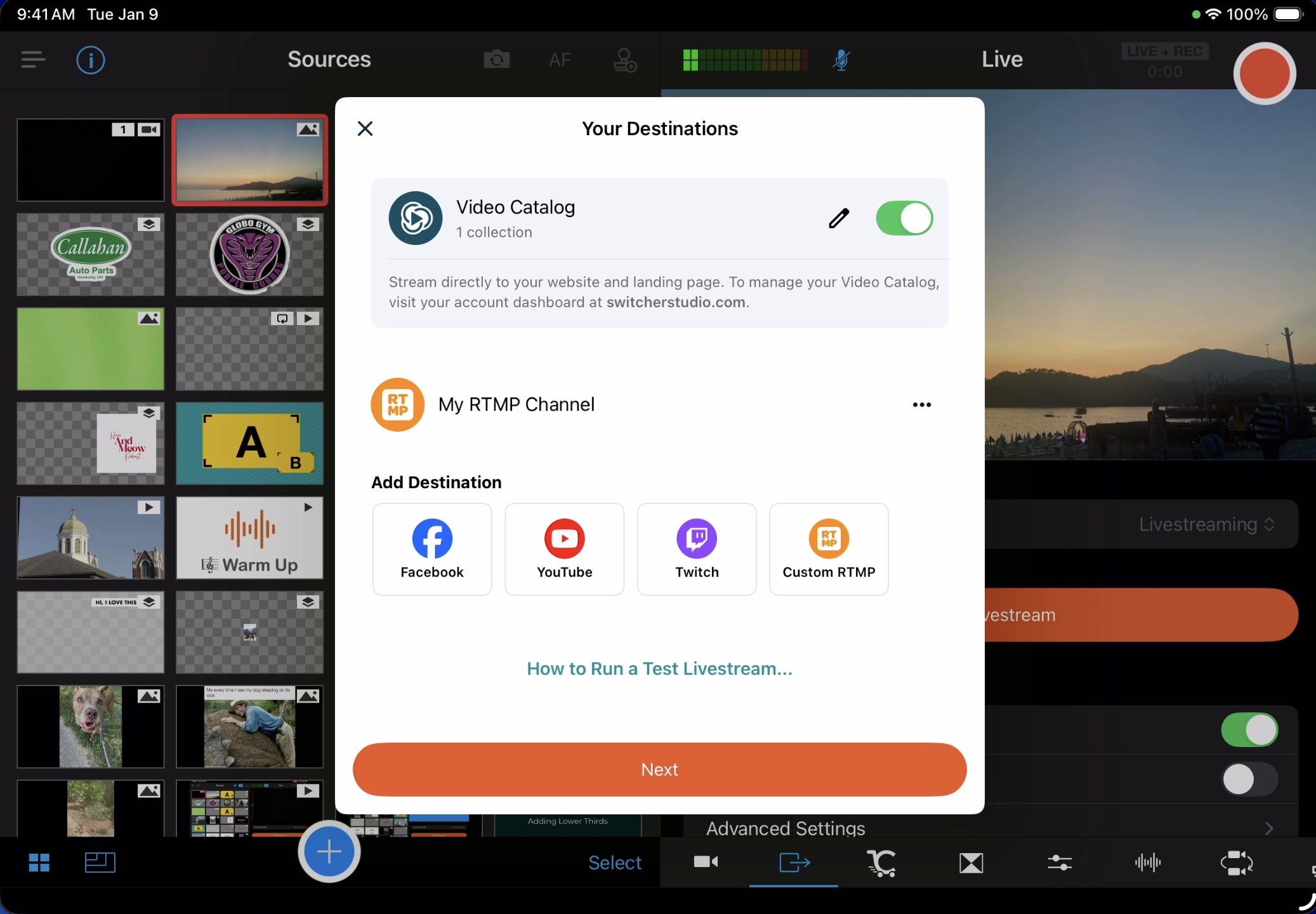 Custom RTMP Setup in the Switcher App