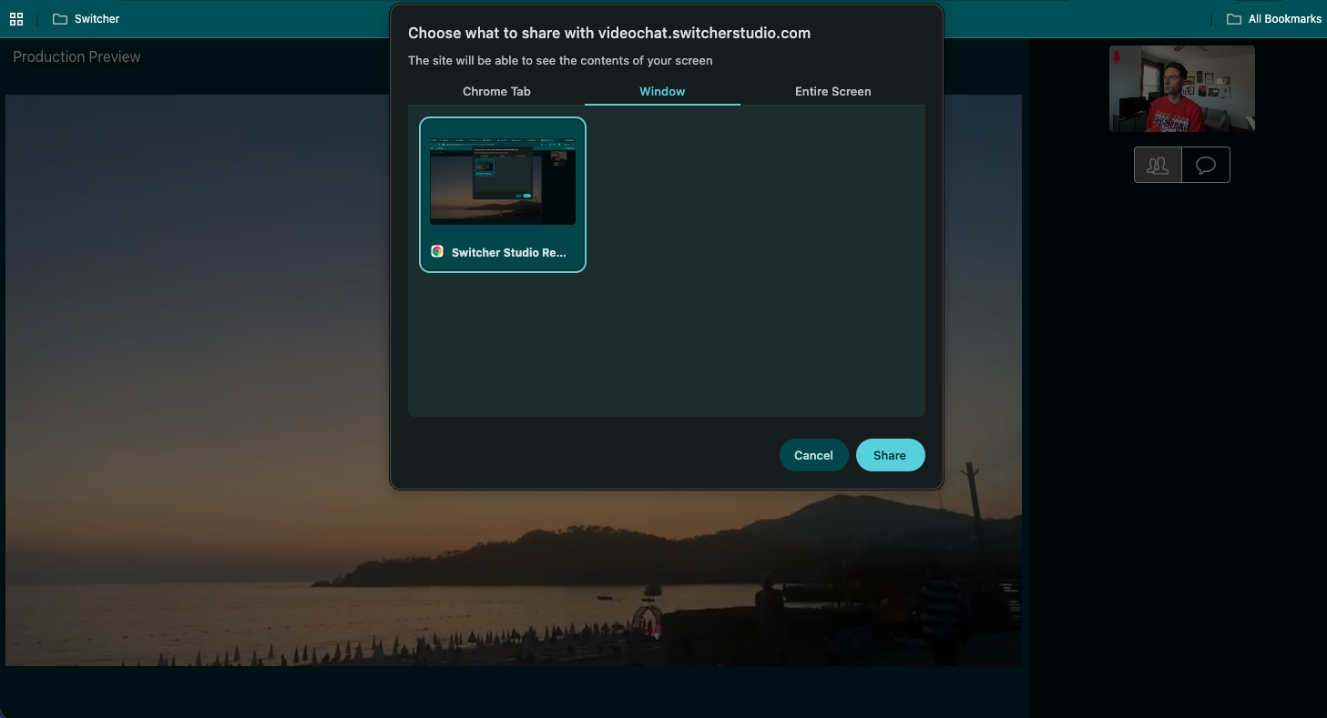 While you are connected to a Remote Guest room, you or your guests can share their Mac or PC screen when using a compatible browser. Screensharing with Remote Guest is also a great alternative if experiencing issues with Switcher Cast.