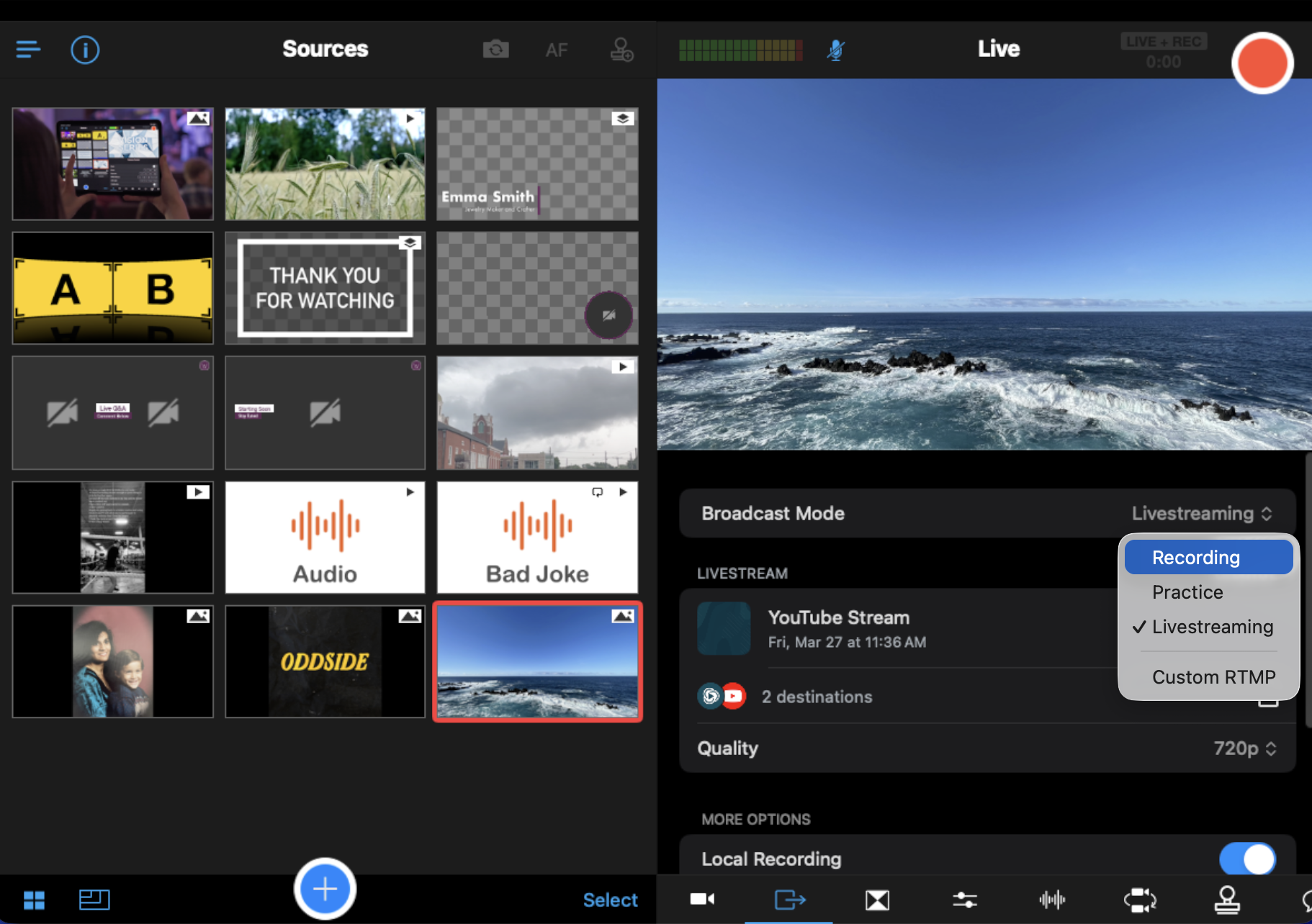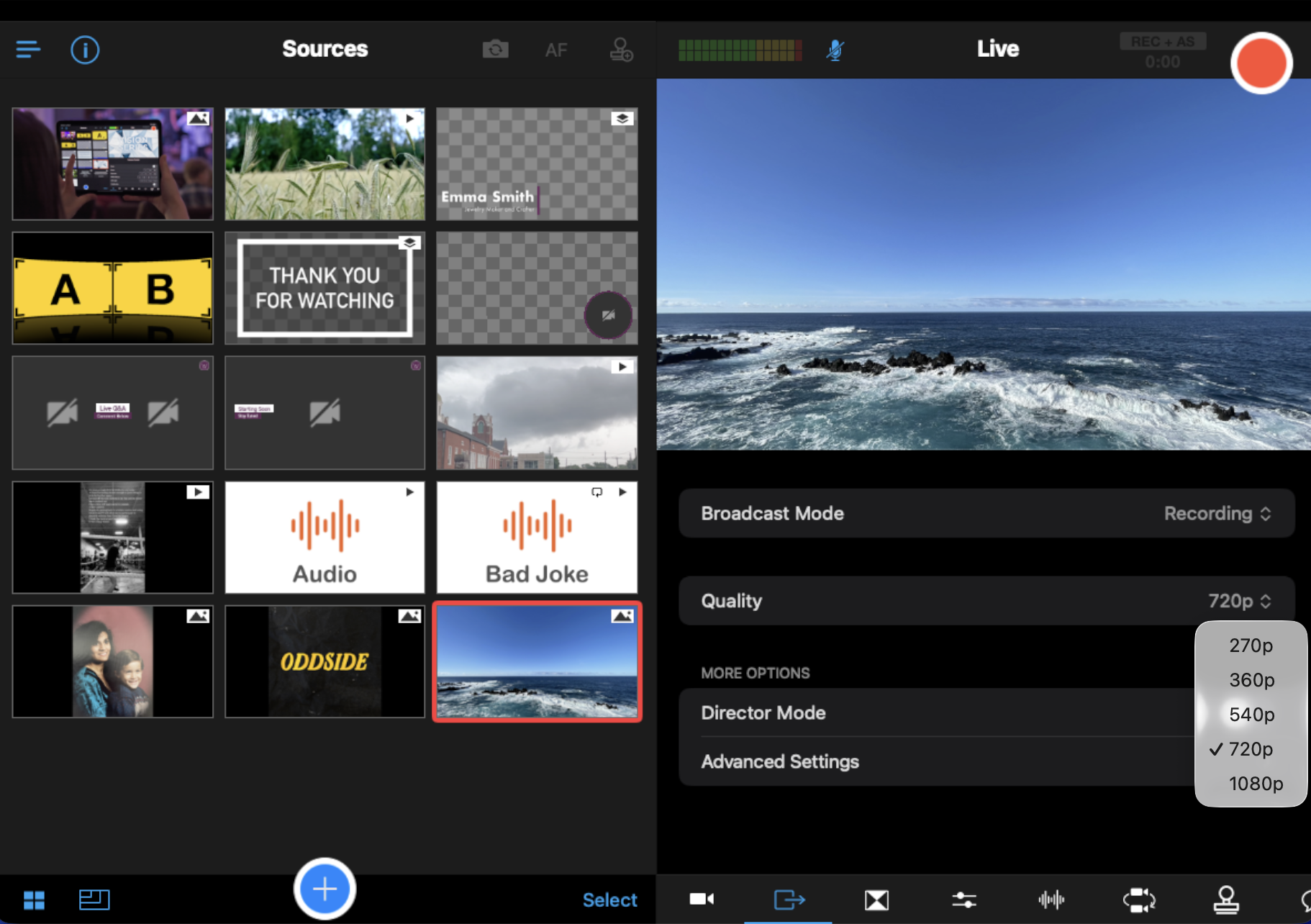 Adjust to the desired quality setting and choose the Broadcast Mode you would like to use for your next production.