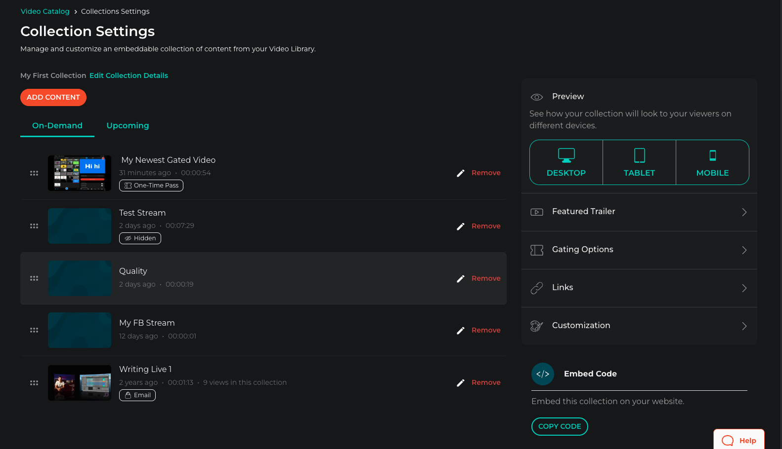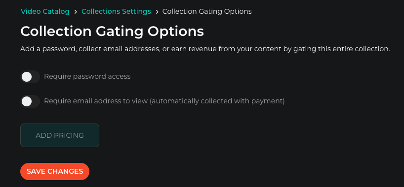 If you have an existing video in a Collection that you would like to add a pass to in order for viewers to access, you can update the settings from your Switcher Dashboard.