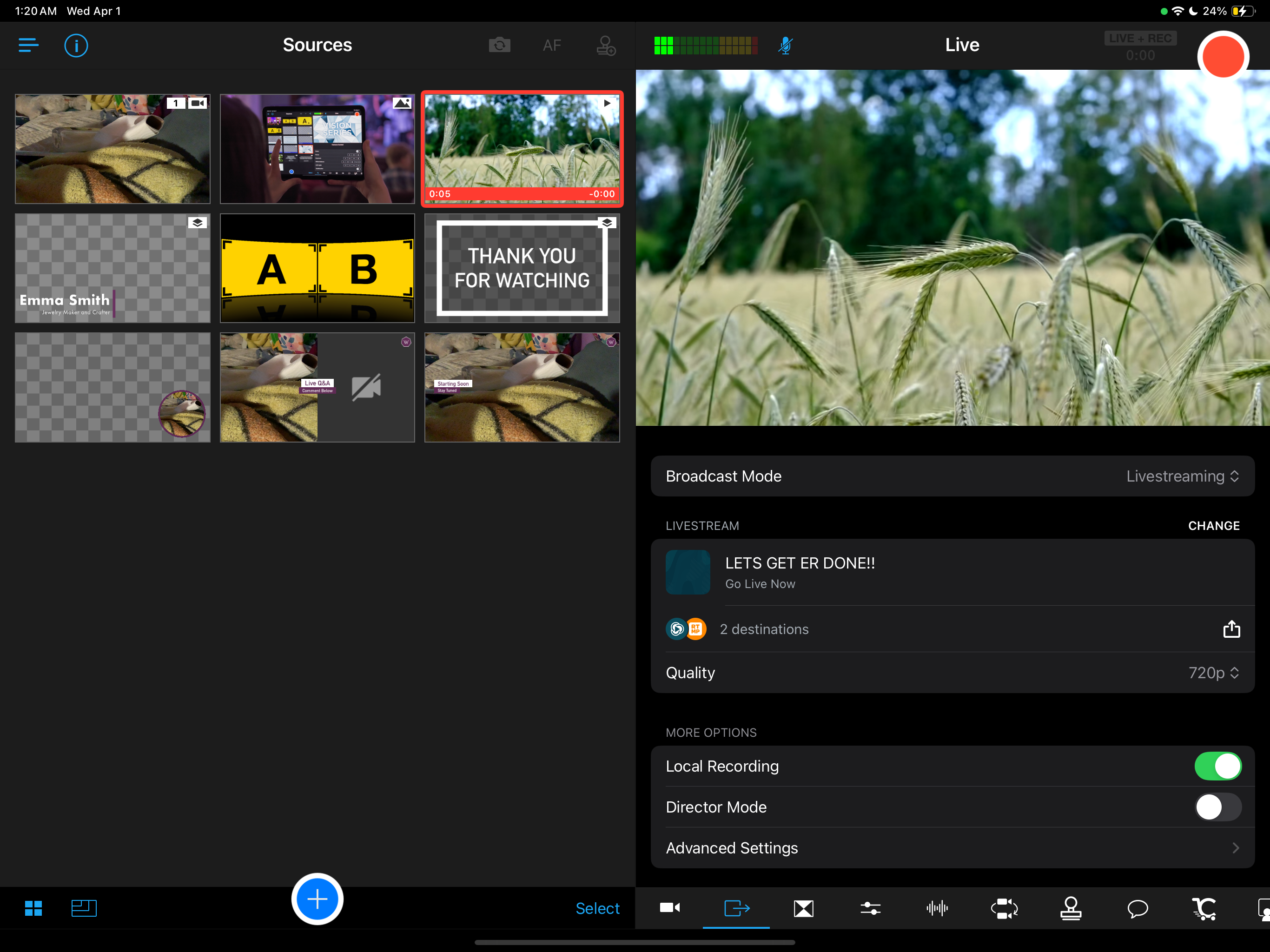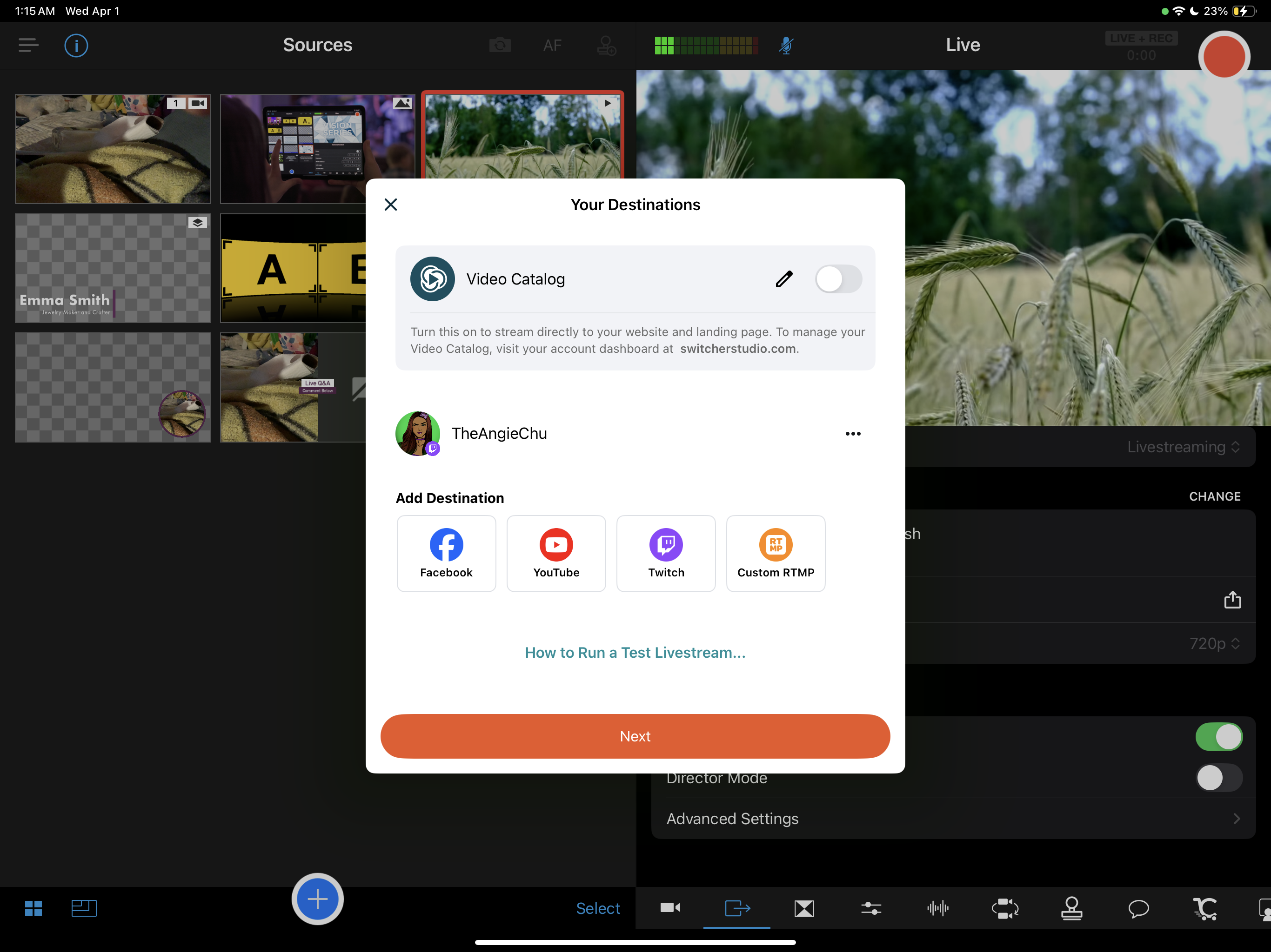 Going Live To Twitch Via RTMP Within The Switcher App