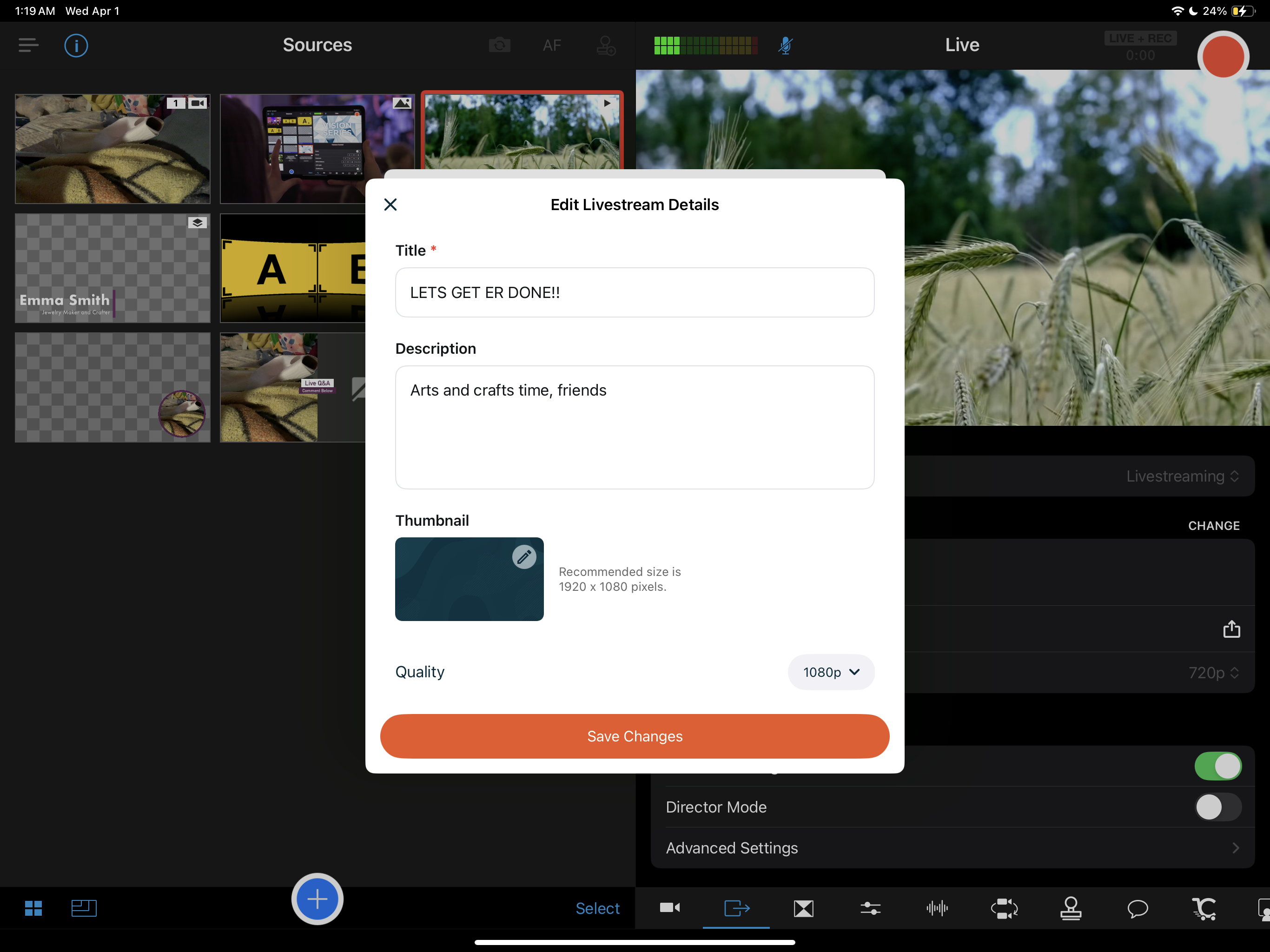 - When you're done, tap on the orange "Create Livestream" button at the bottom.