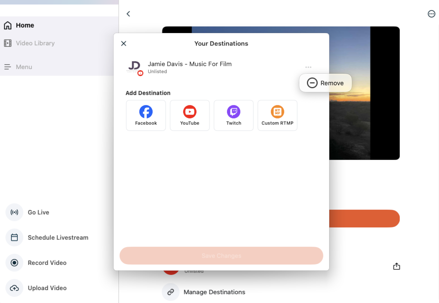 - Tap the ellipsis (...) next to the stream you want to manage and tap Manage Destinations.