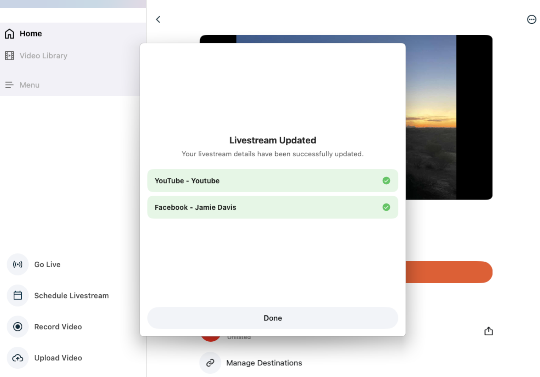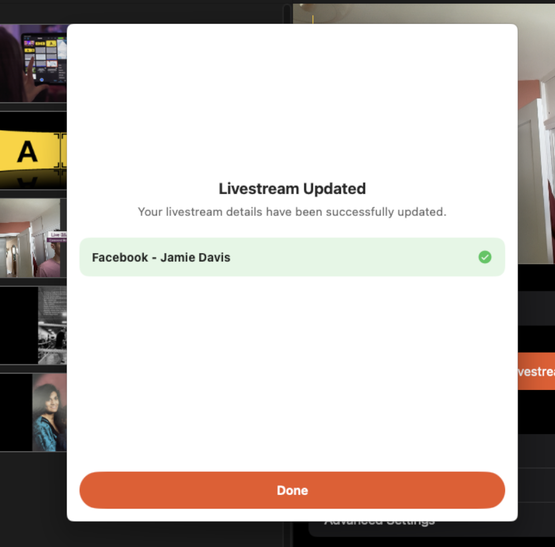 - Once the update has been successfully completed, tap Done and you will see your changes reflected in the stream details.