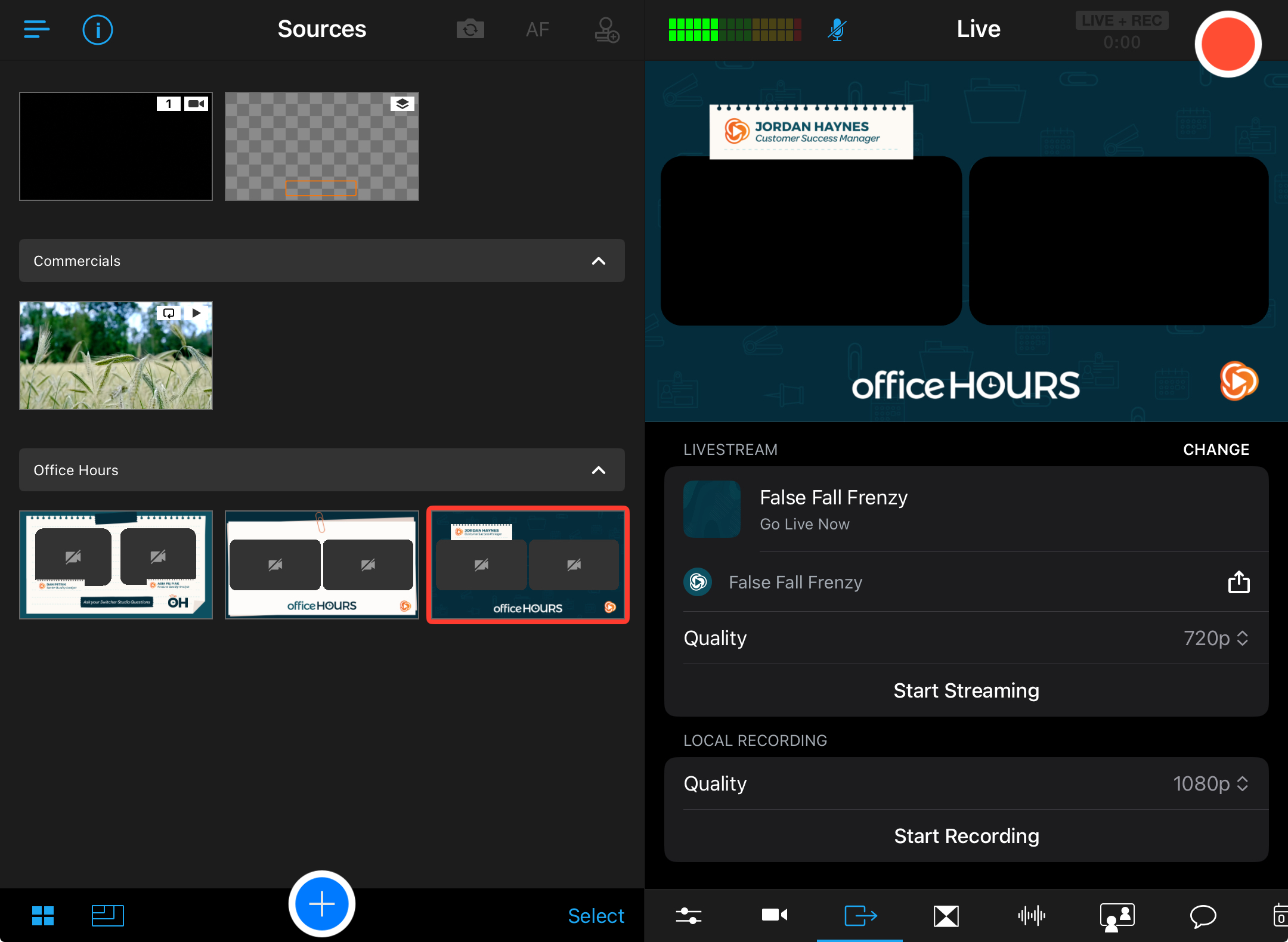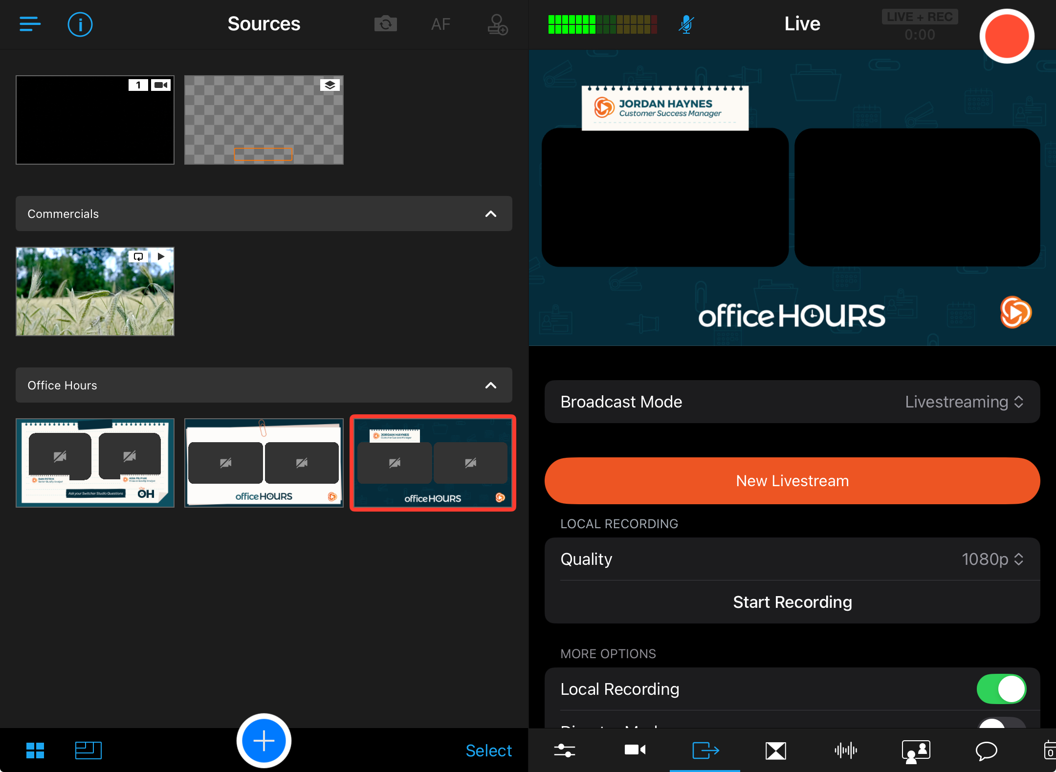Beginning with Switcher app version 13.11.0, you can control your streaming and recording quality separately without using Director Mode! You can stream at the quality that works best for your WiFi speed (480p, 720p, or 1080p), while also having a high-quality recording on your device post-broadcast.