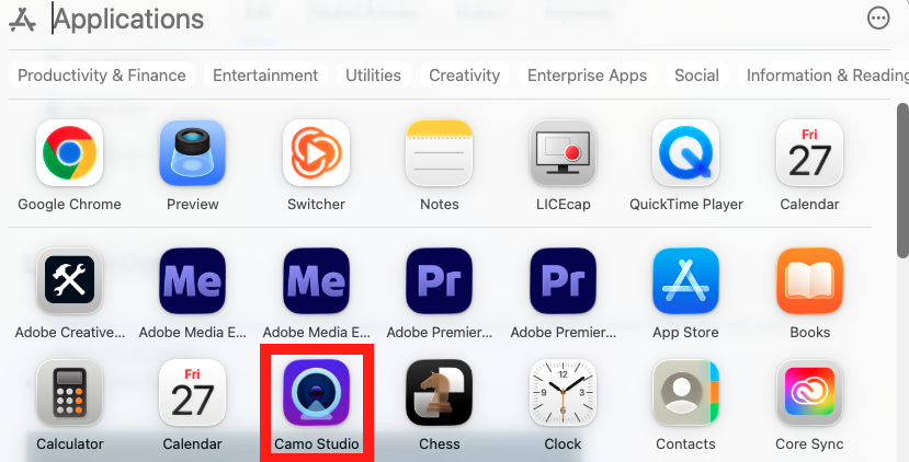 • Navigate to Camo Studio on your computer (you can use the search feature if you are not sure where it is located)