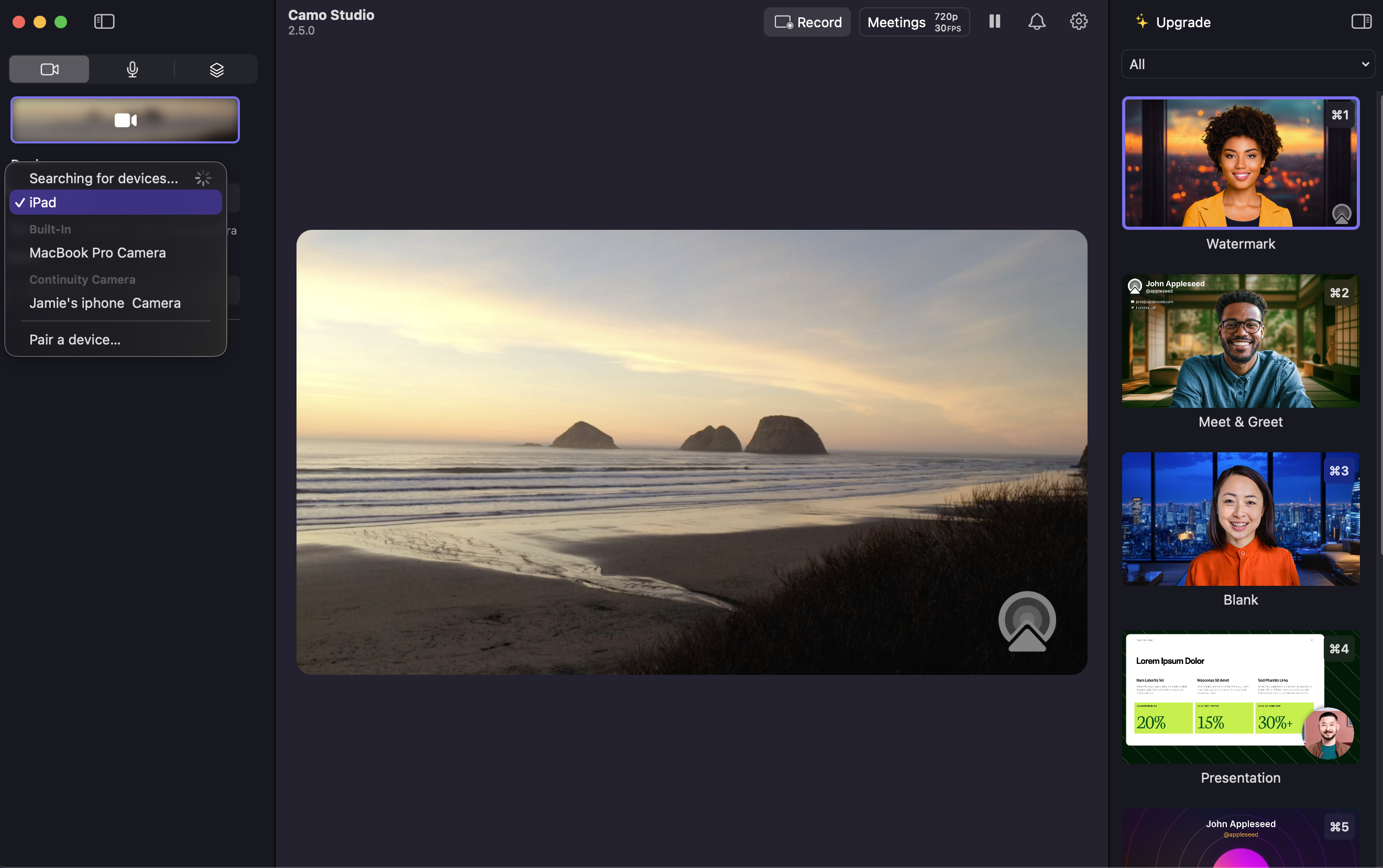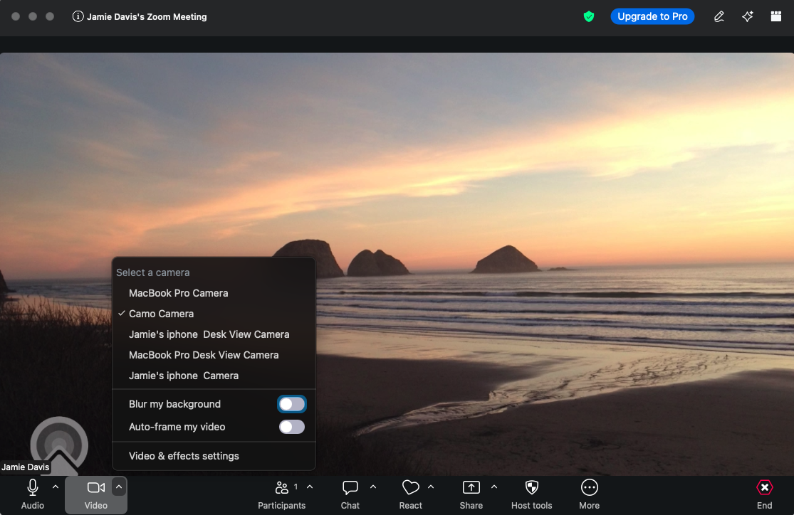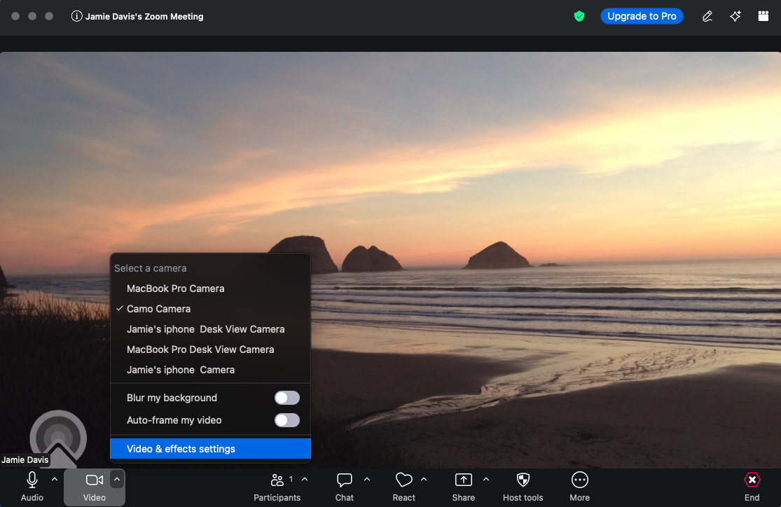 Camo, an app created by the software company ReIncubate, makes it easy to use an iPhone or iPad as a webcam. The cameras on iOS devices are significantly better than webcams, so using Camo leads to higher quality video calls.